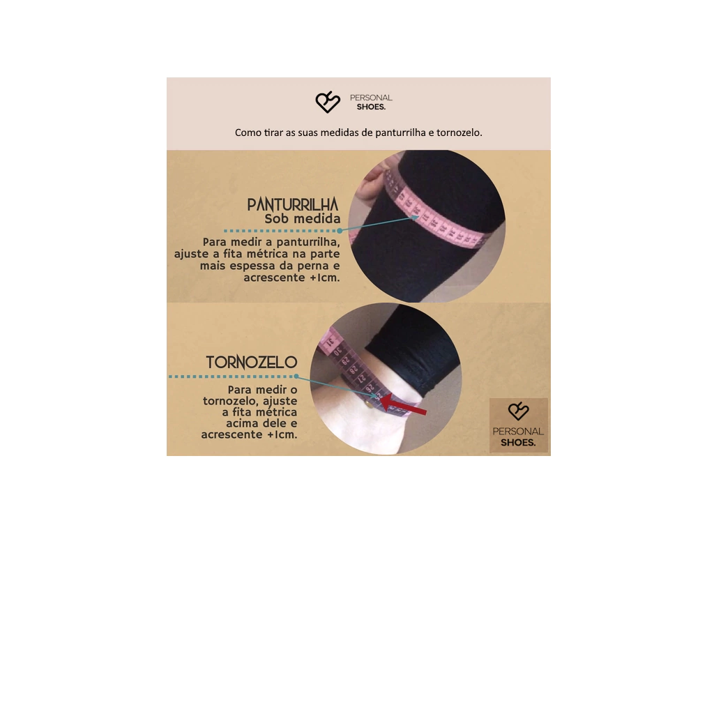 Personalize cor, forro, medida de panturrilha e tornozelo.